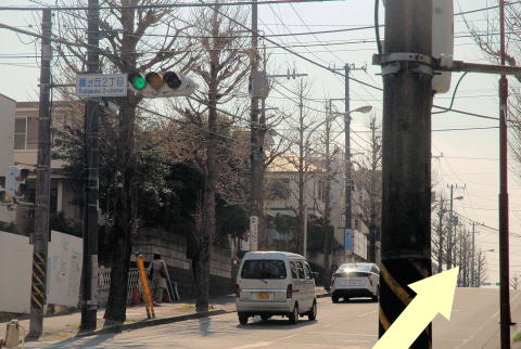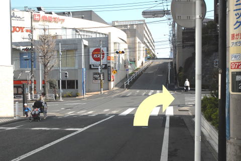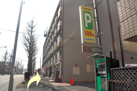 | 坂を上ります。その先にコインパーキングがあります。 |